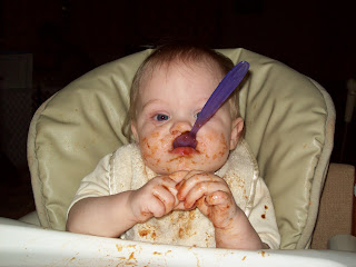 Her top two teeth are definitely in. She's enjoying eating a little bit more. Her favorite flavors include banana and mango. She still loves baths - Mommy and her take them together now since she loves standing and it kills Mommy's back to constantly lean over the tub, keeping her down.